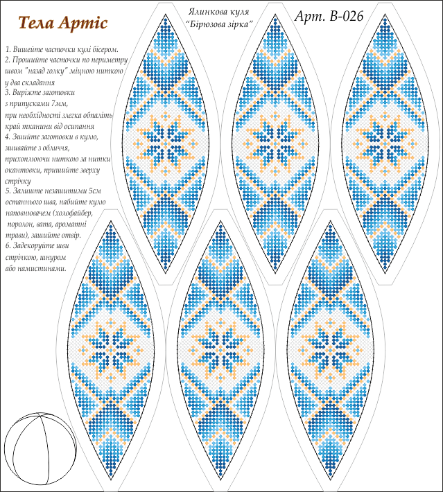 Схема вишивки бісером на габардині Куля Бірюзова зірка В-026