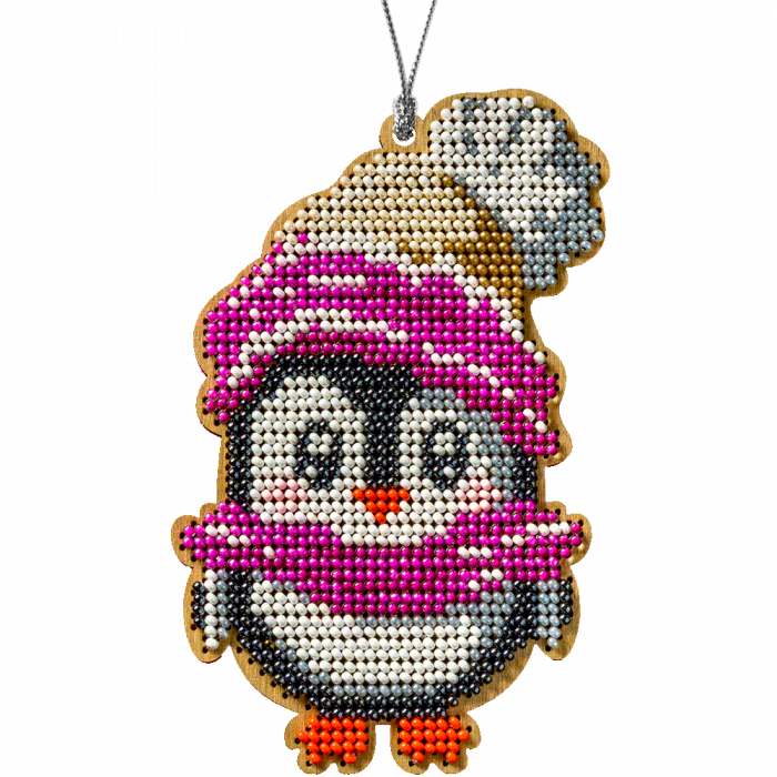 Набір для вишивання бісером для дерева Пінгвін у рожевому FLK-235